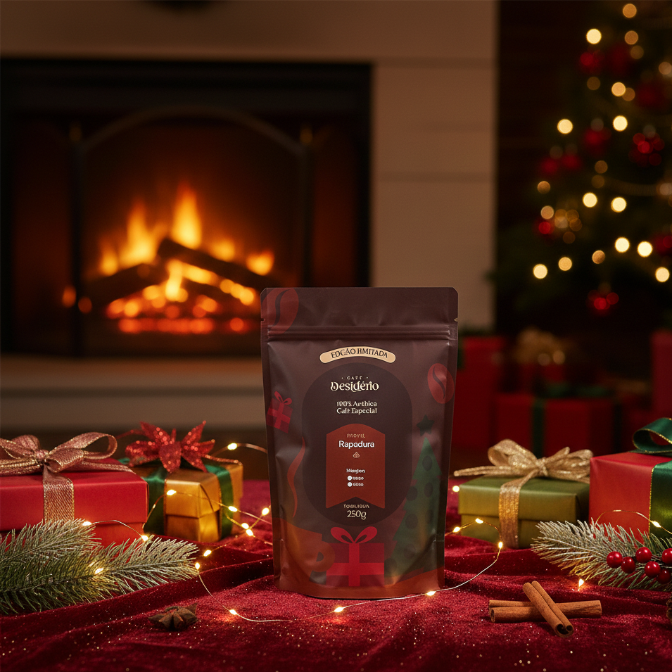 Este não é só mais um café — é a magia do Natal em forma de bebida. Com 500 unidades numeradas, em uma edição limitada e totalmente especial, o Café Desidério perfil rapadura nasce do melhor da nossa fazenda em Campos Altos, colhido e selecionado com rigor e torrado com precisão para entregar um sabor único: encorpado, adocicado, suave, sem amargor e com aquela nota marcante de rapadura que aquece como noite de Natal.