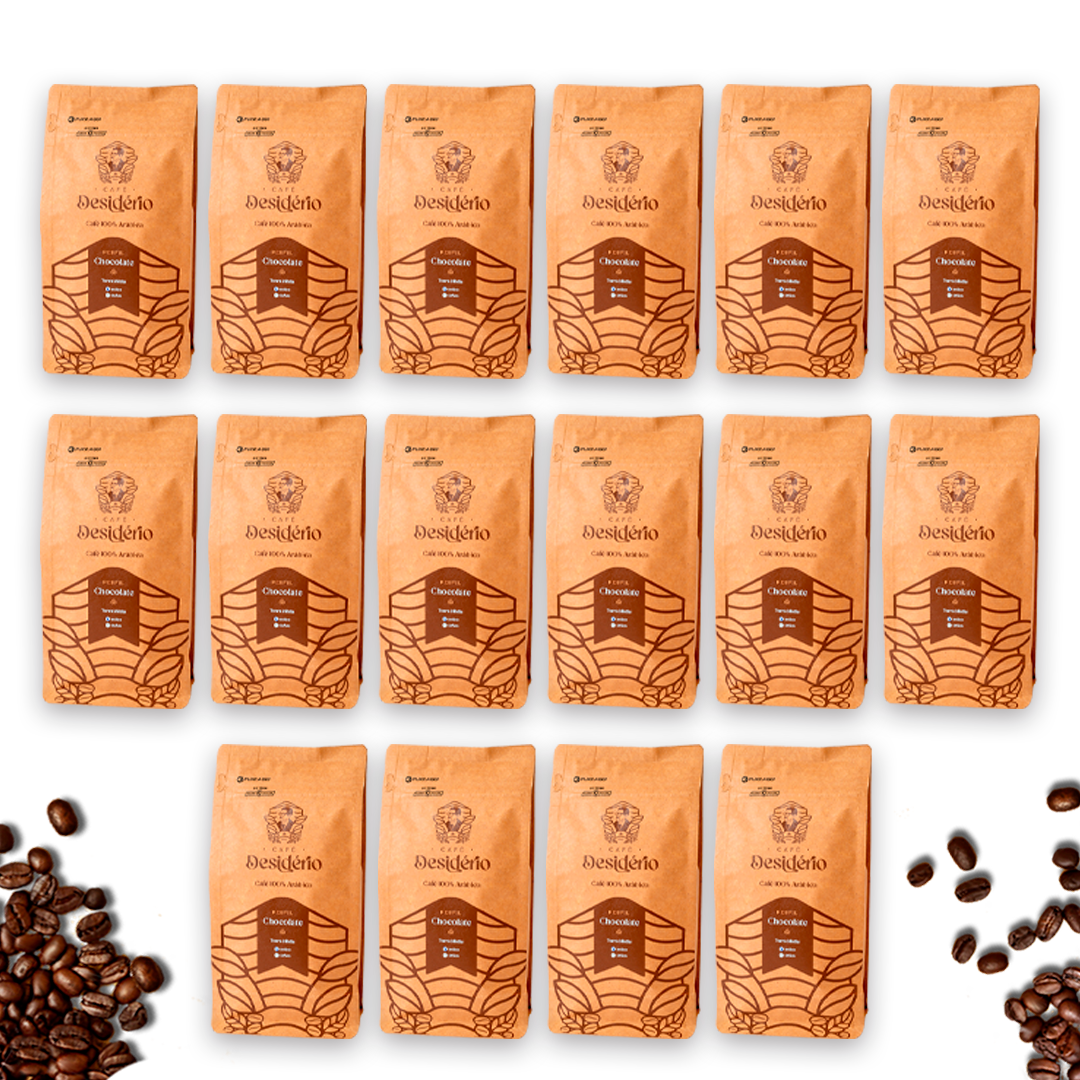 Kit composto por 16 pacotes de 250g do nosso café especial para quem busca mais economia e melhor custo benefício. Esse não é só mais um café — isso é café de verdade. Selecionado a dedo, o melhor Café da fazenda, em Campos Altos, e torrado com precisão, o Café Desidério perfil chocolate é a escolha certa para quem busca uma bebida encorpada, doce, sem amargor e sem acidez. Um café que te abraça logo no primeiro gole.